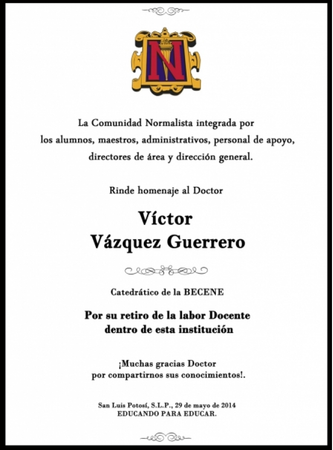 La Becene festeja y realiza homenaje al Doctor Víctor Vázquez Guerrero.