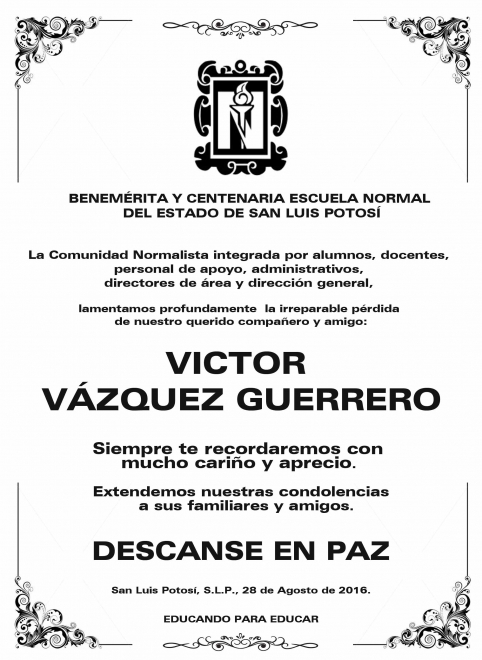 Descanse en paz Maestro Victor Vázquez Guerrero.