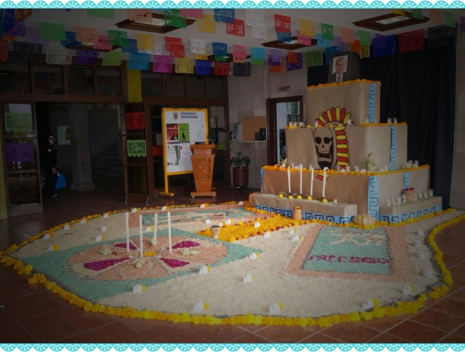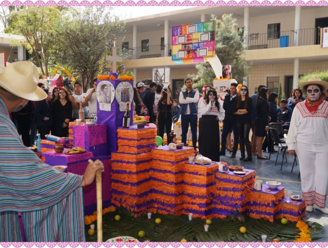 Este año las alumnas de la licenciatura en Educación Preescolar montaron el altar de origen maya, del que explicaron su simbolismo y su conformación dónde se colocan ofrendas florales, comida, semillas, veladoras, adornos entre otros objetos para rendir homenaje a nuestros muertos.