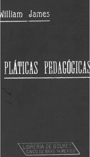 James, William. Pláticas pedagógicas / traducción de la edición francesa por J. Díaz de León.— México: Librería de la viuda de Ch. Bouret, 1907, 144 p.